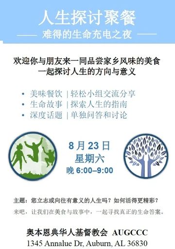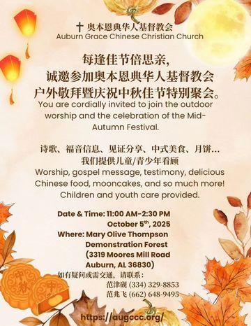 地点:Auburn Church of Christ, 712 S College St, Auburn, AL 36830.